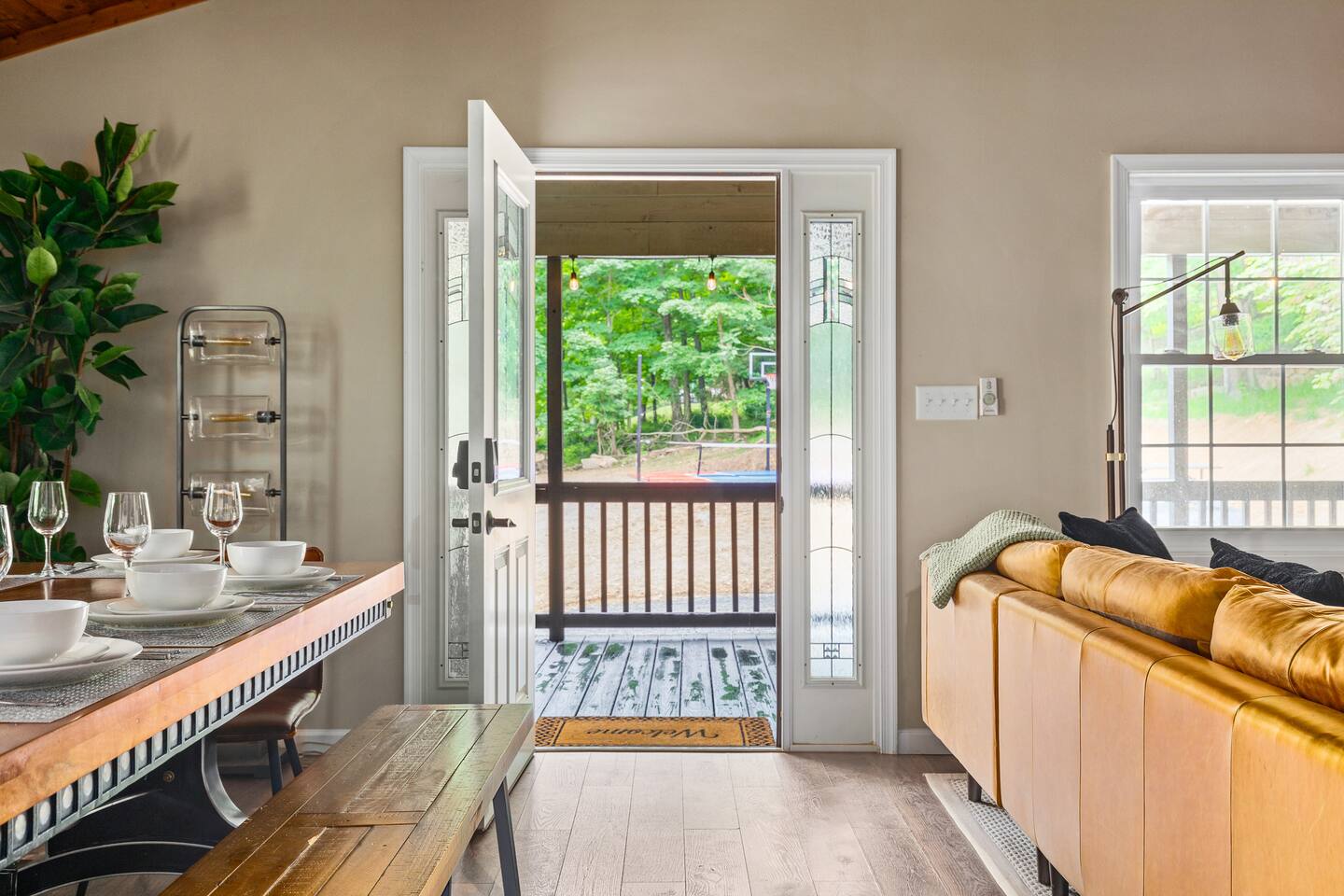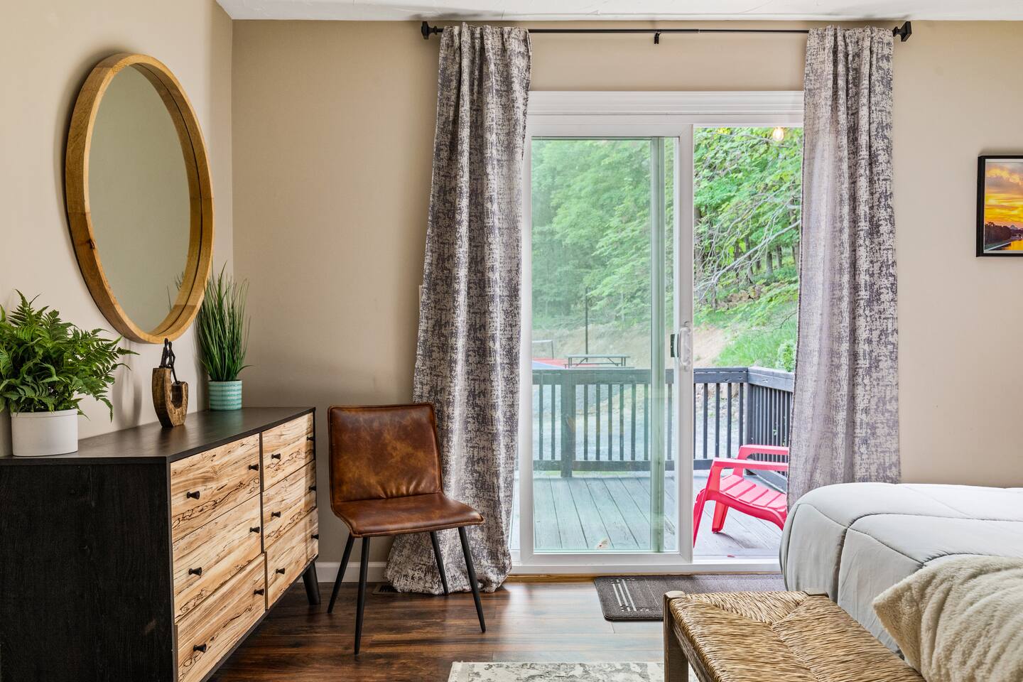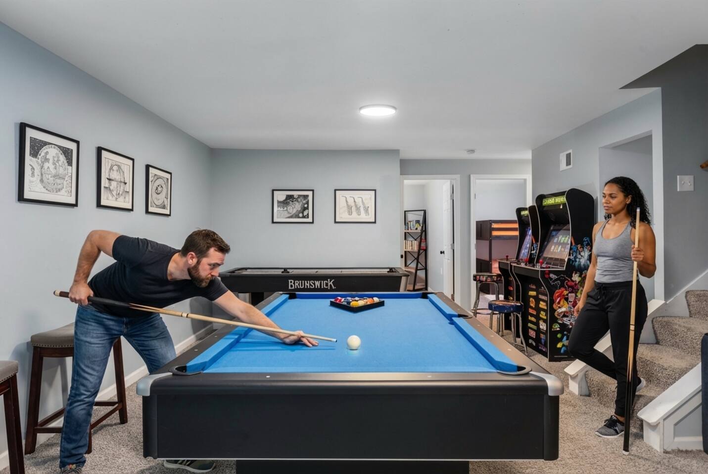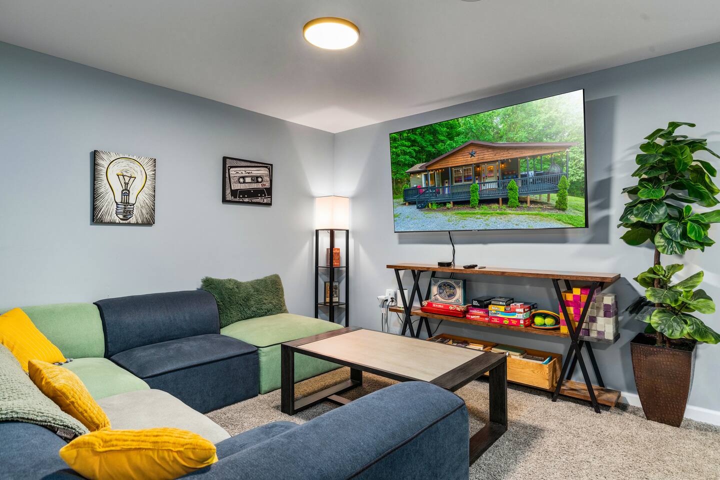 5 private acres. Full sports court. Zero quiet hours. This is the group getaway your crew has been asking for. Tucked into the woods outside Berkeley Springs, BearWood delivers what most cabins only promise: real privacy, serious amenities, and the freedom to be as loud (or as lazy) as you want. Guests call it "absolutely gorgeous" and "worth every dollar"—and after a few rounds of pickleball, a sunset in the hot tub, and a late-night fire pit session, you'll understand why. ━━━━━━━━━━━━━━━━━━━━━━ Sleep Three king bedrooms with quality mattresses give couples their own space. A dedicated bunk room (two full-over-full bunks plus a trundle) means the kids—or the friends who lost at poker—sleep well too. Two full bathrooms keep mornings moving. Sleeps 10 comfortably. ━━━━━━━━━━━━━━━━━━━━━━ Play The backyard is the main event: • Private pickleball and basketball court—no reservations, no waiting • Volleyball for all-ages tournaments • 6-hole disc golf course maintained on-property • 6-person hot tub under dark skies • Two fire pits (main yard + porch) for s'mores and late-night conversations Inside, the game room holds its own: pool table, air hockey, arcade games, and a board game collection deep enough to settle grudges. ━━━━━━━━━━━━━━━━━━━━━━ Stay In Two 75" smart TVs with Apple TV handle movie nights. The electric fireplace sets the mood. Fast WiFi and a dedicated workspace mean you can take that call—but you probably won't want to. ━━━━━━━━━━━━━━━━━━━━━━ Cook & Gather The fully equipped kitchen has everything you need to feed a crowd: electric stove, cookware, dinnerware. The dining table seats all 10, because the best meals happen when everyone's at the same table. ━━━━━━━━━━━━━━━━━━━━━━ Explore Berkeley Springs America's first spa town sits minutes away—mineral baths, massage therapy, and a walkable downtown with local breweries and wineries. Hiking, biking, kayaking, and horseback riding are all close. When you want to venture further: Whitetail Resort (26 miles), Harpers Ferry, Shenandoah National Park, Antietam Battlefield, and Luray Caverns are all easy day trips. ━━━━━━━━━━━━━━━━━━━━━━ Details Parking: Space for 8 vehicles Pets: Welcome (fee applies) Hot water: On-demand system—no cold surprises Security: Exterior cameras only, no indoor monitoring As seen on: YouTube cabin tour supporting St. Jude ━━━━━━━━━━━━━━━━━━━━━━ The Bottom Line BearWood isn't a cabin where you sit around wondering what to do. It's a place where the weekend flies by because you're too busy playing, eating, laughing, and collapsing into the hot tub. Guests leave saying it "has everything you could ask for." They're not wrong.