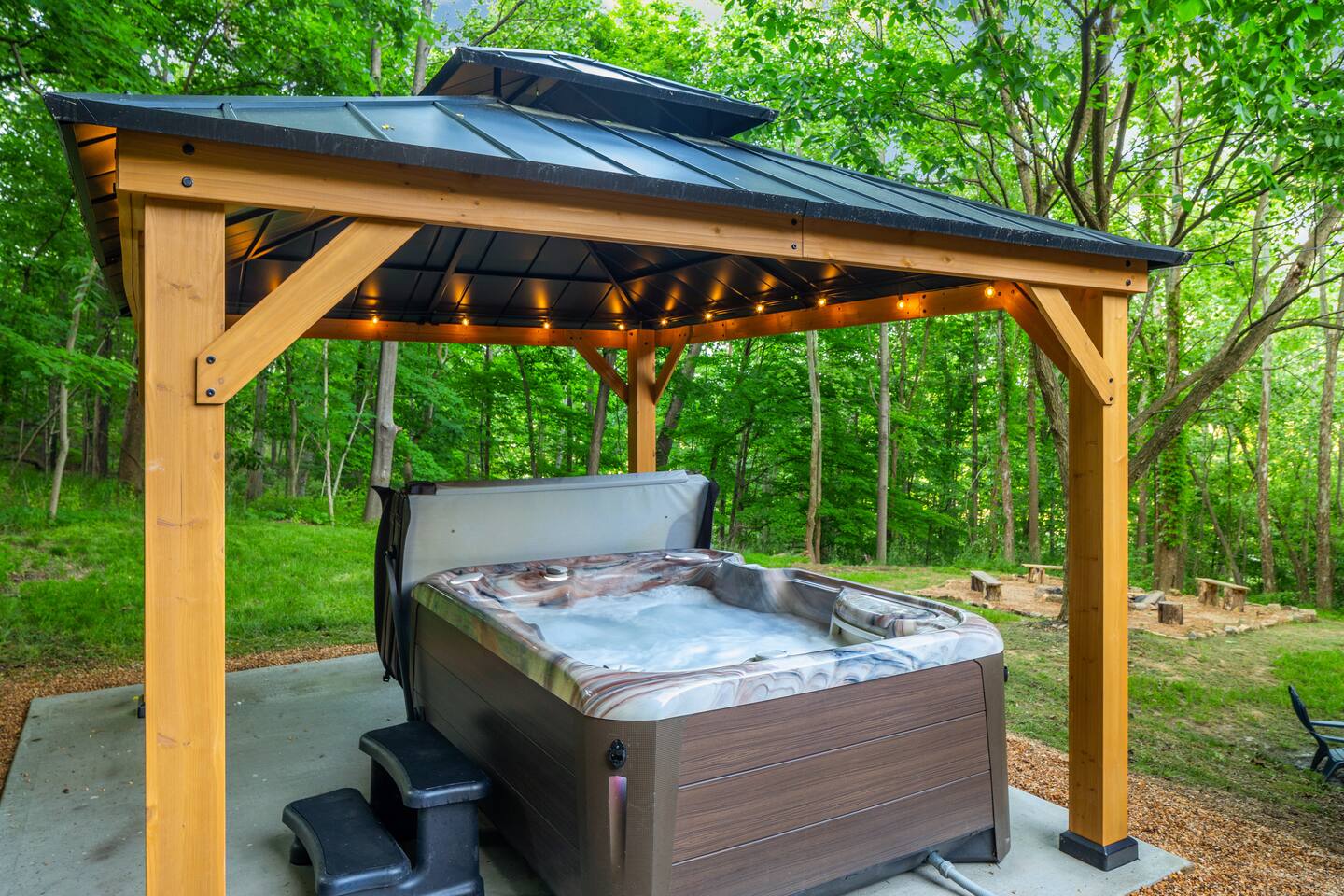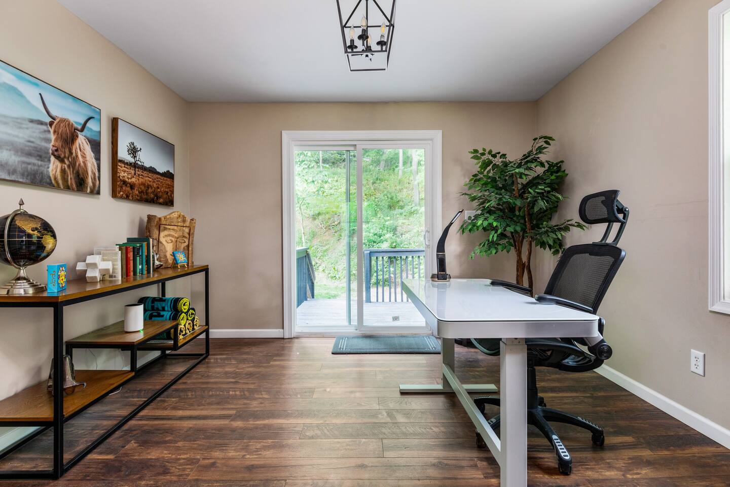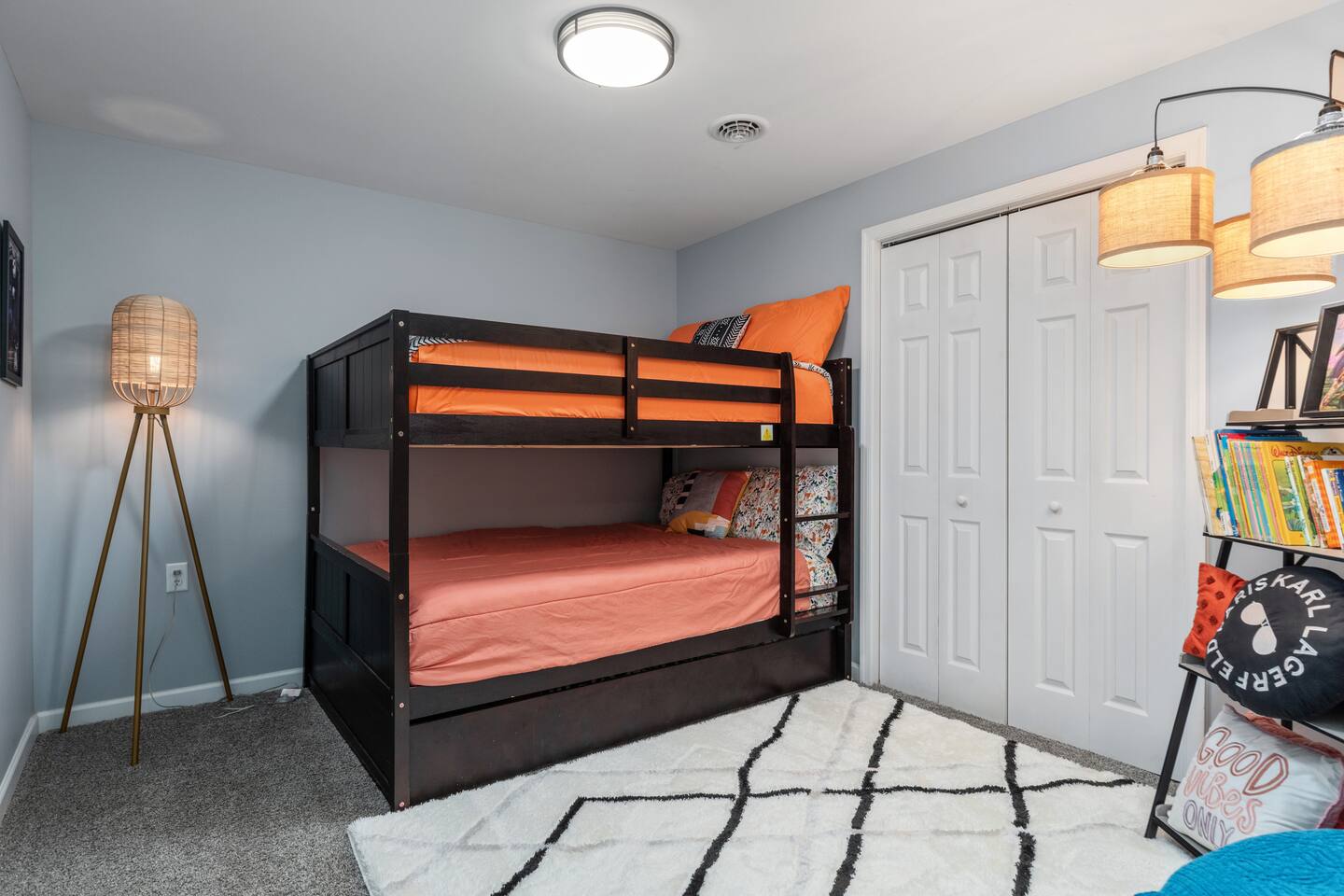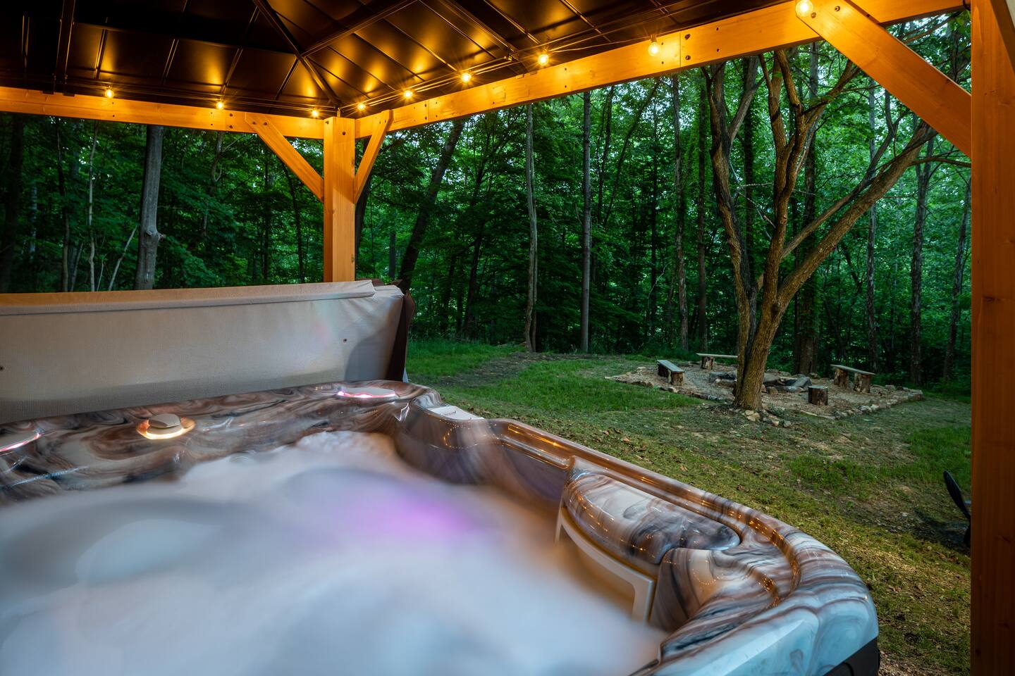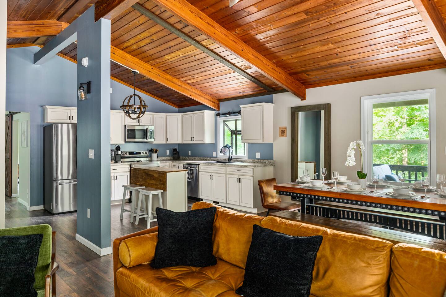 5 private acres. Full sports court. Zero quiet hours. This is the group getaway your crew has been asking for. Tucked into the woods outside Berkeley Springs, BearWood delivers what most cabins only promise: real privacy, serious amenities, and the freedom to be as loud (or as lazy) as you want. Guests call it "absolutely gorgeous" and "worth every dollar"—and after a few rounds of pickleball, a sunset in the hot tub, and a late-night fire pit session, you'll understand why. ━━━━━━━━━━━━━━━━━━━━━━ Sleep Three king bedrooms with quality mattresses give couples their own space. A dedicated bunk room (two full-over-full bunks plus a trundle) means the kids—or the friends who lost at poker—sleep well too. Two full bathrooms keep mornings moving. Sleeps 10 comfortably. ━━━━━━━━━━━━━━━━━━━━━━ Play The backyard is the main event: • Private pickleball and basketball court—no reservations, no waiting • Volleyball for all-ages tournaments • 6-hole disc golf course maintained on-property • 6-person hot tub under dark skies • Two fire pits (main yard + porch) for s'mores and late-night conversations Inside, the game room holds its own: pool table, air hockey, arcade games, and a board game collection deep enough to settle grudges. ━━━━━━━━━━━━━━━━━━━━━━ Stay In Two 75" smart TVs with Apple TV handle movie nights. The electric fireplace sets the mood. Fast WiFi and a dedicated workspace mean you can take that call—but you probably won't want to. ━━━━━━━━━━━━━━━━━━━━━━ Cook & Gather The fully equipped kitchen has everything you need to feed a crowd: electric stove, cookware, dinnerware. The dining table seats all 10, because the best meals happen when everyone's at the same table. ━━━━━━━━━━━━━━━━━━━━━━ Explore Berkeley Springs America's first spa town sits minutes away—mineral baths, massage therapy, and a walkable downtown with local breweries and wineries. Hiking, biking, kayaking, and horseback riding are all close. When you want to venture further: Whitetail Resort (26 miles), Harpers Ferry, Shenandoah National Park, Antietam Battlefield, and Luray Caverns are all easy day trips. ━━━━━━━━━━━━━━━━━━━━━━ Details Parking: Space for 8 vehicles Pets: Welcome (fee applies) Hot water: On-demand system—no cold surprises Security: Exterior cameras only, no indoor monitoring As seen on: YouTube cabin tour supporting St. Jude ━━━━━━━━━━━━━━━━━━━━━━ The Bottom Line BearWood isn't a cabin where you sit around wondering what to do. It's a place where the weekend flies by because you're too busy playing, eating, laughing, and collapsing into the hot tub. Guests leave saying it "has everything you could ask for." They're not wrong.