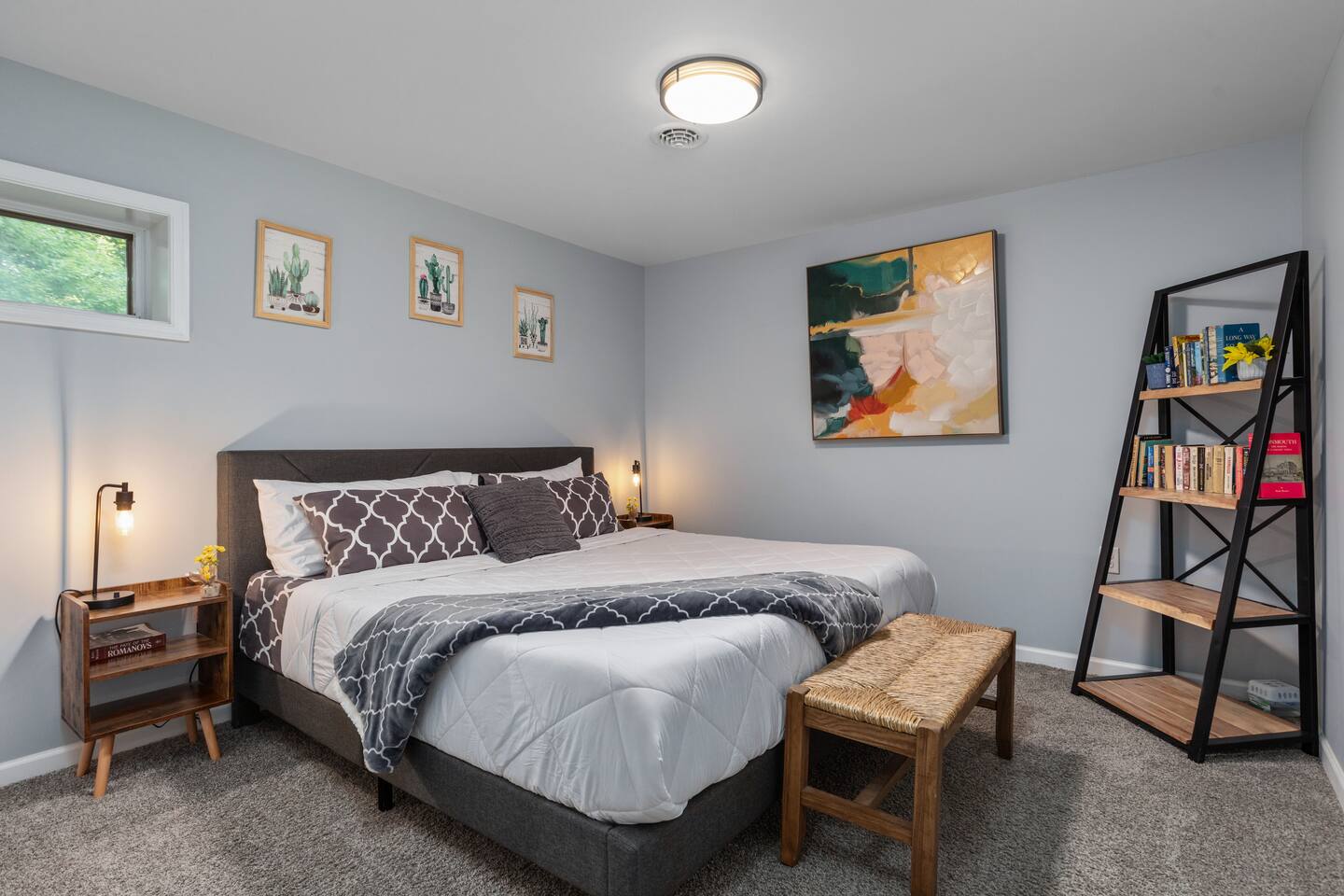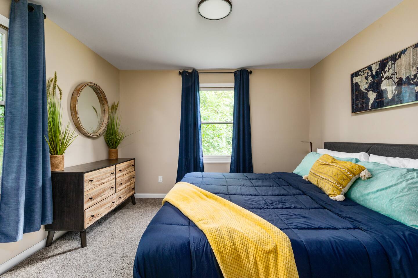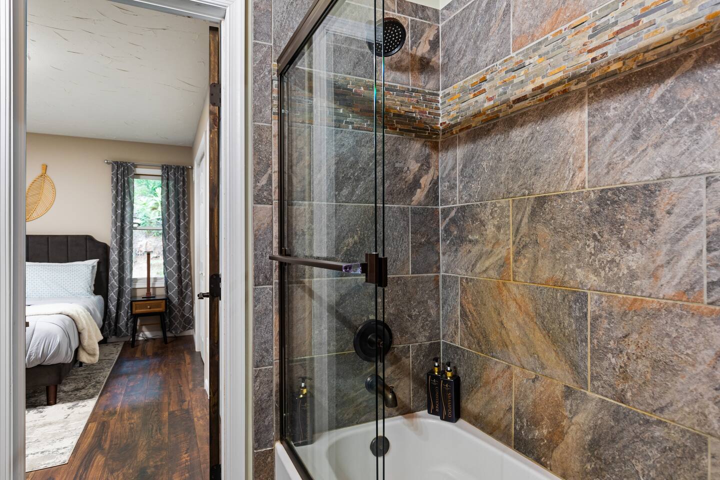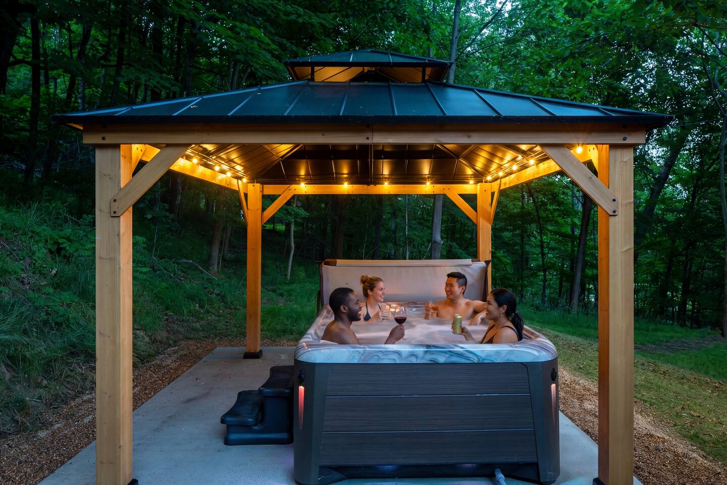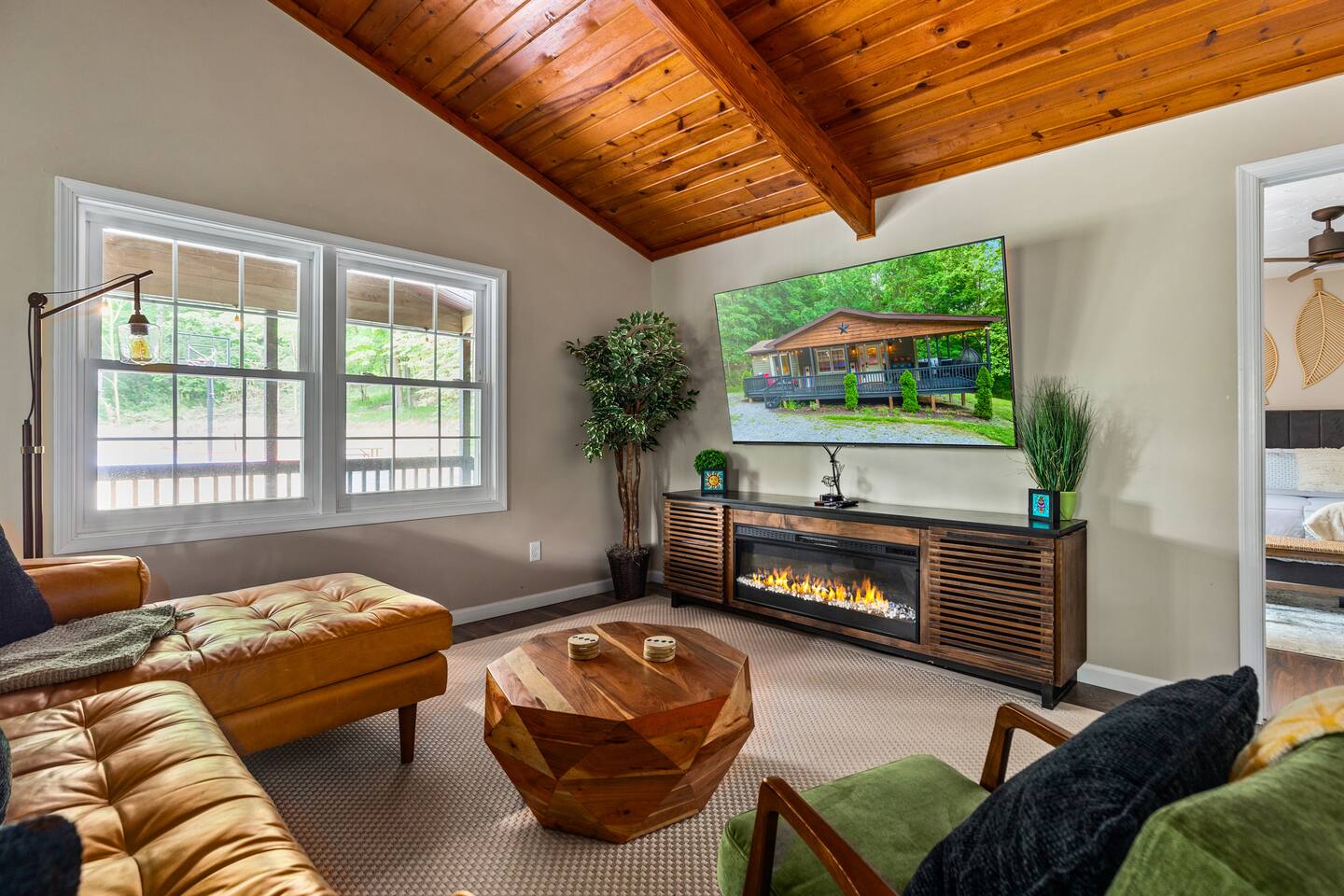 5 private acres. Full sports court. Zero quiet hours. This is the group getaway your crew has been asking for. Tucked into the woods outside Berkeley Springs, BearWood delivers what most cabins only promise: real privacy, serious amenities, and the freedom to be as loud (or as lazy) as you want. Guests call it "absolutely gorgeous" and "worth every dollar"—and after a few rounds of pickleball, a sunset in the hot tub, and a late-night fire pit session, you'll understand why. ━━━━━━━━━━━━━━━━━━━━━━ Sleep Three king bedrooms with quality mattresses give couples their own space. A dedicated bunk room (two full-over-full bunks plus a trundle) means the kids—or the friends who lost at poker—sleep well too. Two full bathrooms keep mornings moving. Sleeps 10 comfortably. ━━━━━━━━━━━━━━━━━━━━━━ Play The backyard is the main event: • Private pickleball and basketball court—no reservations, no waiting • Volleyball for all-ages tournaments • 6-hole disc golf course maintained on-property • 6-person hot tub under dark skies • Two fire pits (main yard + porch) for s'mores and late-night conversations Inside, the game room holds its own: pool table, air hockey, arcade games, and a board game collection deep enough to settle grudges. ━━━━━━━━━━━━━━━━━━━━━━ Stay In Two 75" smart TVs with Apple TV handle movie nights. The electric fireplace sets the mood. Fast WiFi and a dedicated workspace mean you can take that call—but you probably won't want to. ━━━━━━━━━━━━━━━━━━━━━━ Cook & Gather The fully equipped kitchen has everything you need to feed a crowd: electric stove, cookware, dinnerware. The dining table seats all 10, because the best meals happen when everyone's at the same table. ━━━━━━━━━━━━━━━━━━━━━━ Explore Berkeley Springs America's first spa town sits minutes away—mineral baths, massage therapy, and a walkable downtown with local breweries and wineries. Hiking, biking, kayaking, and horseback riding are all close. When you want to venture further: Whitetail Resort (26 miles), Harpers Ferry, Shenandoah National Park, Antietam Battlefield, and Luray Caverns are all easy day trips. ━━━━━━━━━━━━━━━━━━━━━━ Details Parking: Space for 8 vehicles Pets: Welcome (fee applies) Hot water: On-demand system—no cold surprises Security: Exterior cameras only, no indoor monitoring As seen on: YouTube cabin tour supporting St. Jude ━━━━━━━━━━━━━━━━━━━━━━ The Bottom Line BearWood isn't a cabin where you sit around wondering what to do. It's a place where the weekend flies by because you're too busy playing, eating, laughing, and collapsing into the hot tub. Guests leave saying it "has everything you could ask for." They're not wrong.